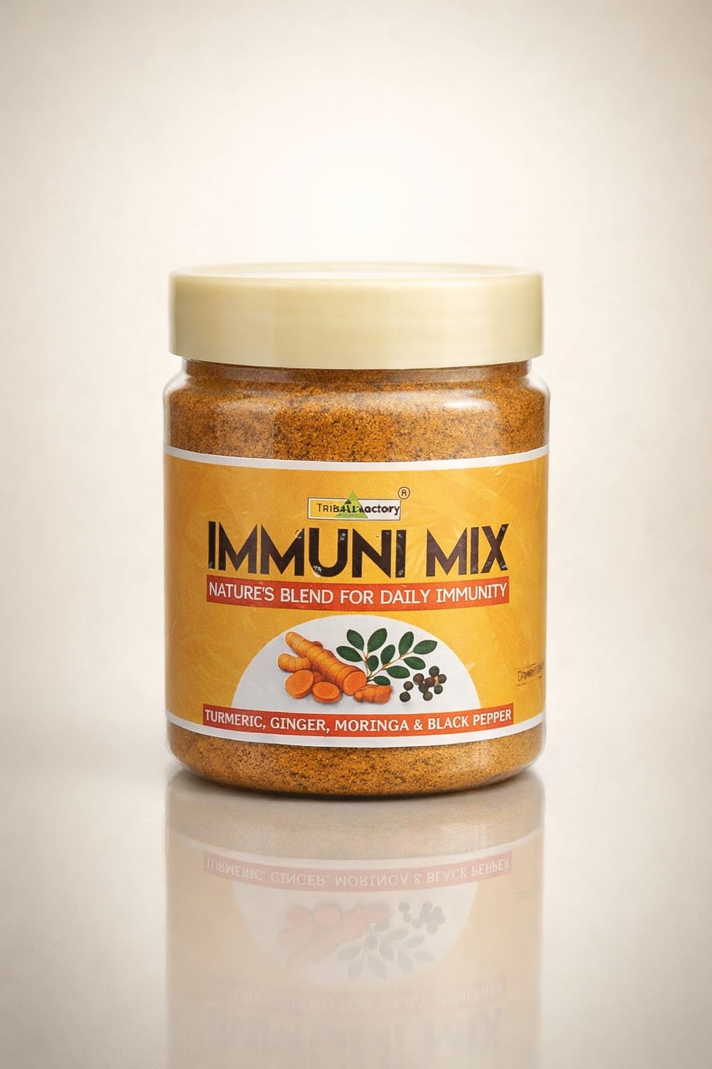Support your body naturally with IMMUNI MIX, a powerful blend of Turmeric, Ginger, Moringa, and Black Pepper — carefully combined to strengthen your daily immunity and overall wellness.